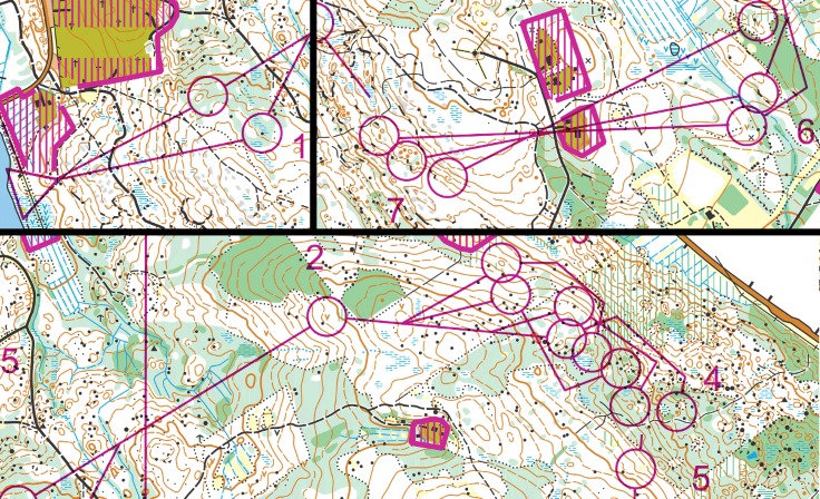Myös Jukolan yhteislähdöt tuottivat hieman haasteita. 6. ja 7. osuuden ykkösrastit ovat kompromisseja ja suunnistuksellisesti helppoja, mutta niissä päällimmäisenä on läpijuostavuus. Yhteislähdössä siinä ei saa tulla tappelua leimaamisesta. Sen jälkeen kakkosrastin sijoittelu oli vain saada rastiväliviivat pois muiden rastiympyröiden päältä. Tavallaan 6. ja 7. osuus alkavat kolmannelta rastilta.