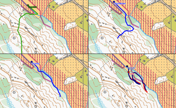 Varsinkin miehistä useimmat alittivat tällaisessa tapauksessa nauhan (kuten Ormay kuvassa vasemmalla alhaalla), mutta osa seurasi tunnollisesti viitoitusta takaisinpäin ja menetti aikaa vähintään yhden ja enimmillään yli kaksi minuuttia. Ongelma oli suurempi naisten kisassa, jossa rasti oli idempänä ja lähempänä peltoa, ja jossa suurempi osa kilpailijoista käytti pohjoista kiertoreittiä.